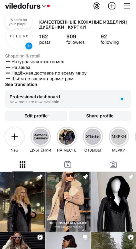 Ко мне обратился владелец онлайн-магазина кожаных курток и дублёнок — стильные изделия из натуральной кожи, ручная работа, хорошее качество. Аккаунт был «живой», но не продавал: около 400 подписчиков, низкая активность, никакой стратегии.