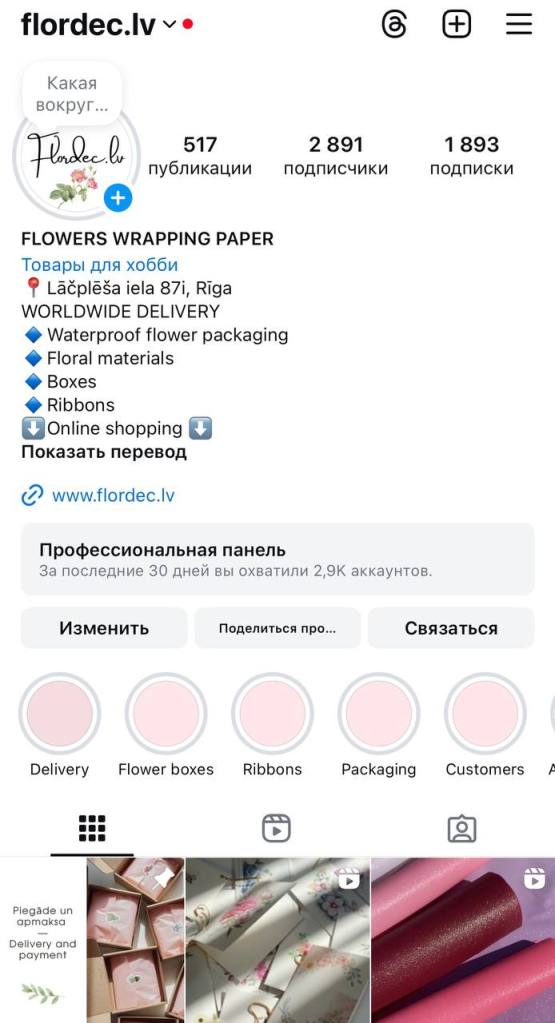 Сначала я провела аудит: оформление аккаунта не отражало УТП, в хайлайтс находился старый контент, посты публиковались редко. Изучила конкурентов и определил ЦА — в основном владельцы магазинов одежды, флористы и декораторы, в том числе новички, которым нужна не только продукция, но и советы по её использованию.