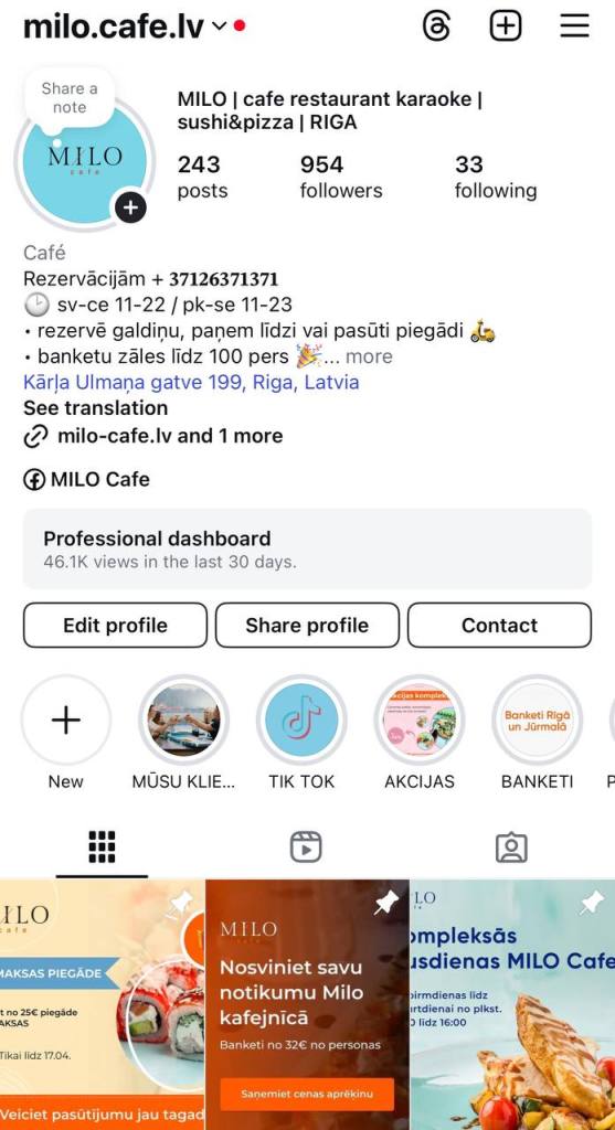 - Написание текстов для постов на двух языках (латышский и английский)